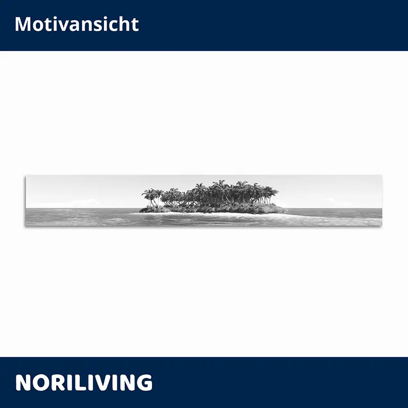Produktinformationen "Fliesenspiegel Alu Tropeninsel mit klarem Himmel 042 schwarz-weiß"
