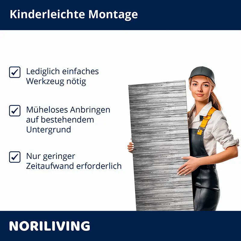Veredeln Sie Wände, Möbel & Objekte im Handumdrehen mit einer stilvollen, fugenlosen Optik – ganz nach Ihrem Geschmack und ohne Lärm, Schmutz oder Bohren. 💡