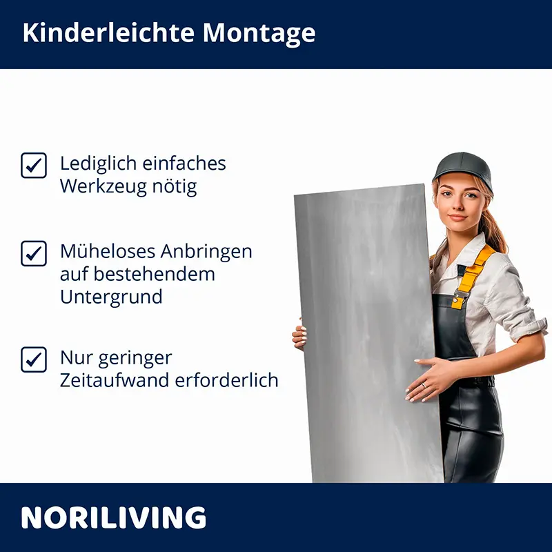 Veredeln Sie Wände, Möbel & Objekte im Handumdrehen mit einer stilvollen, fugenlosen Optik – ganz nach Ihrem Geschmack und ohne Lärm, Schmutz oder Bohren. 💡
