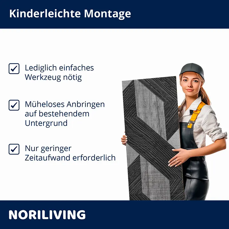 Veredeln Sie Wände, Möbel & Objekte im Handumdrehen mit einer stilvollen, fugenlosen Optik – ganz nach Ihrem Geschmack und ohne Lärm, Schmutz oder Bohren. 💡